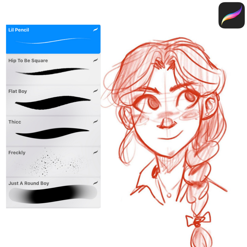 4. Thicc: A simple, bold, responsive brush great for coloring large areas.