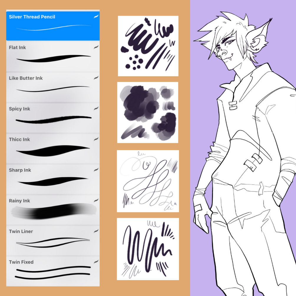 This bold set includes brushes perfect for comic/webcomic illustration in Procreate. You can use these brushes and pens to create variety in your sketching and clean (or messy!) line work, lettering, and comic-making.